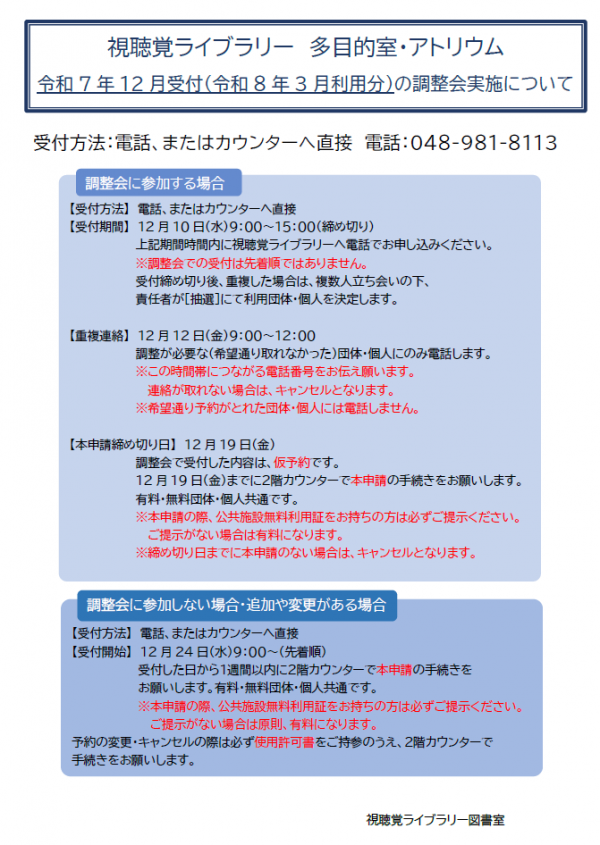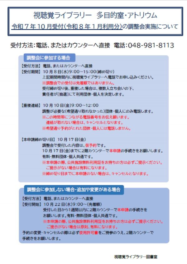 【視聴覚ライブラリー 多目的室・アトリウム調整会について】