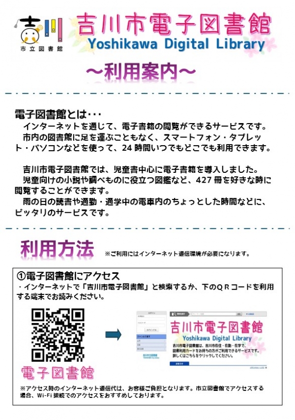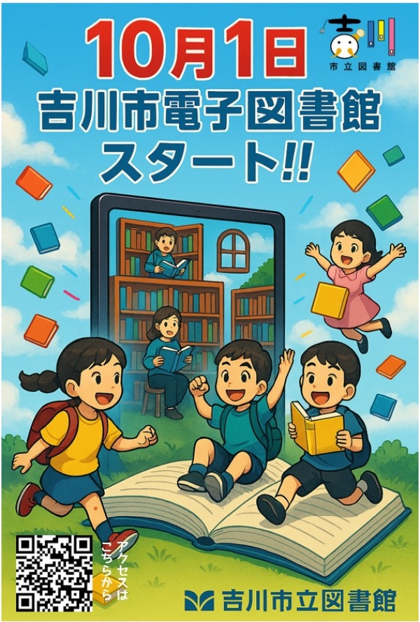 10月1日の午前9時より吉川市電子図書館がスタートします。