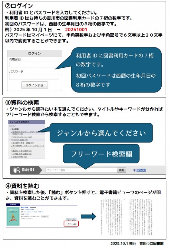 ※利用対象者:吉川市在住・在勤・在学の方で図書利用カードをお持ちの方