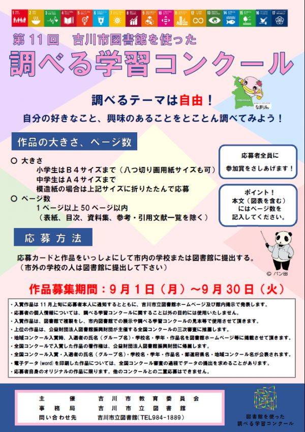 第11回目を迎えました「吉川市図書館を使った調べる学習コンクール」