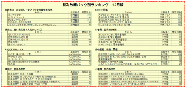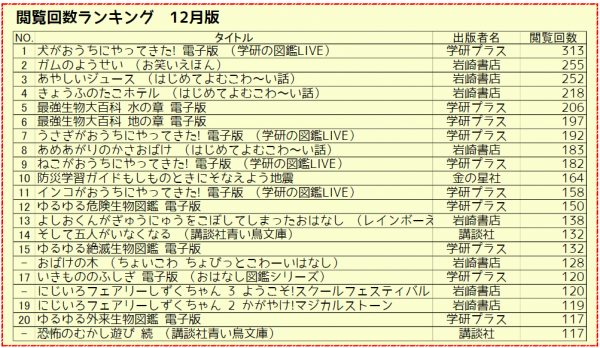 電子図書館の特集で12月ランキングの本を読むことができます。