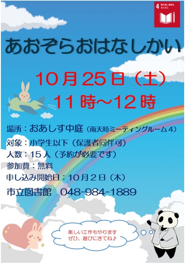 申込み:10/7(火)から吉川市立図書館へ直接、