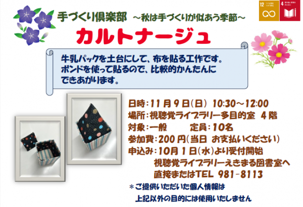 - 【視聴覚ライブラリーえきまる図書室】手づくり倶楽部