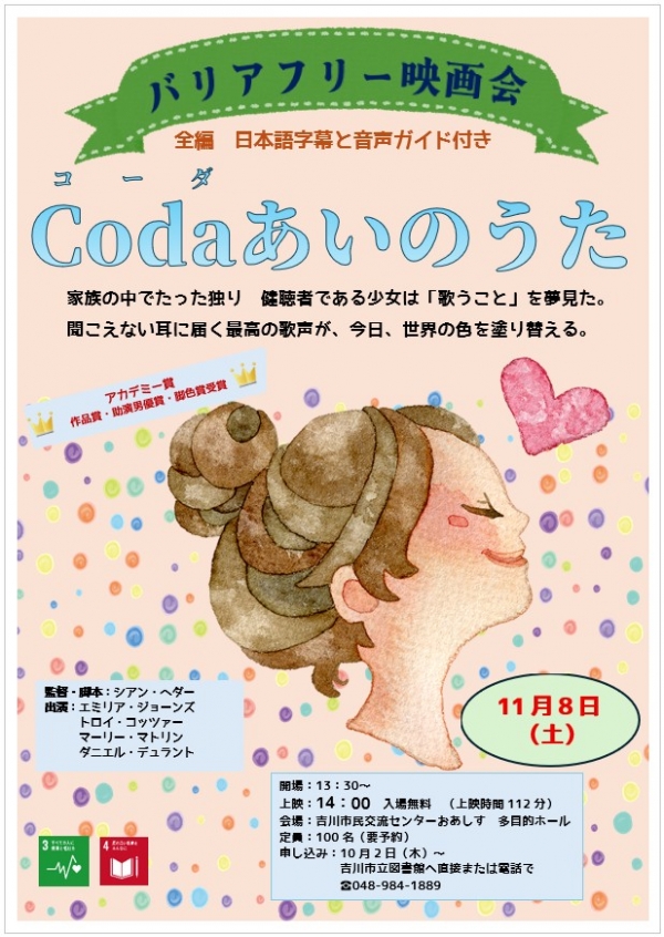 - 【告知】市立・バリアフリー映画会『Coda コーダあいのうた』上映のお知らせ