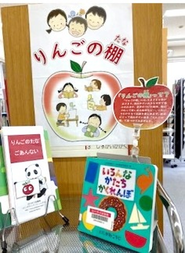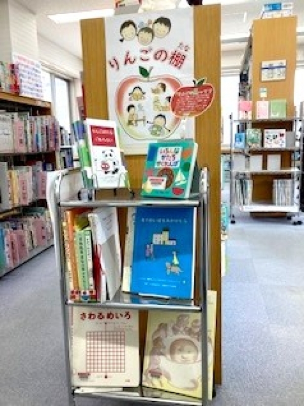 児童コーナーには、お子様向けの「りんごの棚」展示も常設しております。