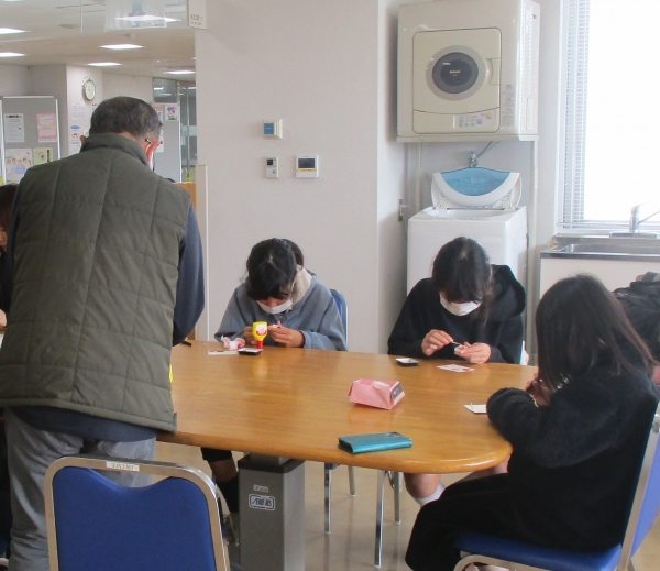 真剣に行ったかるた取り大会の後は、アトラクションのミニかるた取りは全員参加で和気あいあいでした。